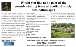 We trust that by the time you leave Stobo you will feel completely relaxed and revitalised. Even more importantly we hope that your stay will help you establish new patterns of health and fitness which will be of lasting benefit to you in the future.